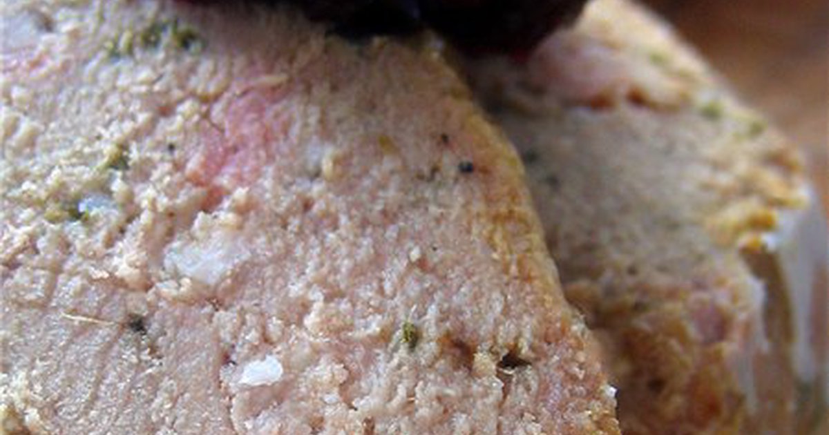 - Выпекайте около 45-50 минут (по размеру формы). В конце можно приоткрыть крышку, чтобы паштет немного подрумянился.