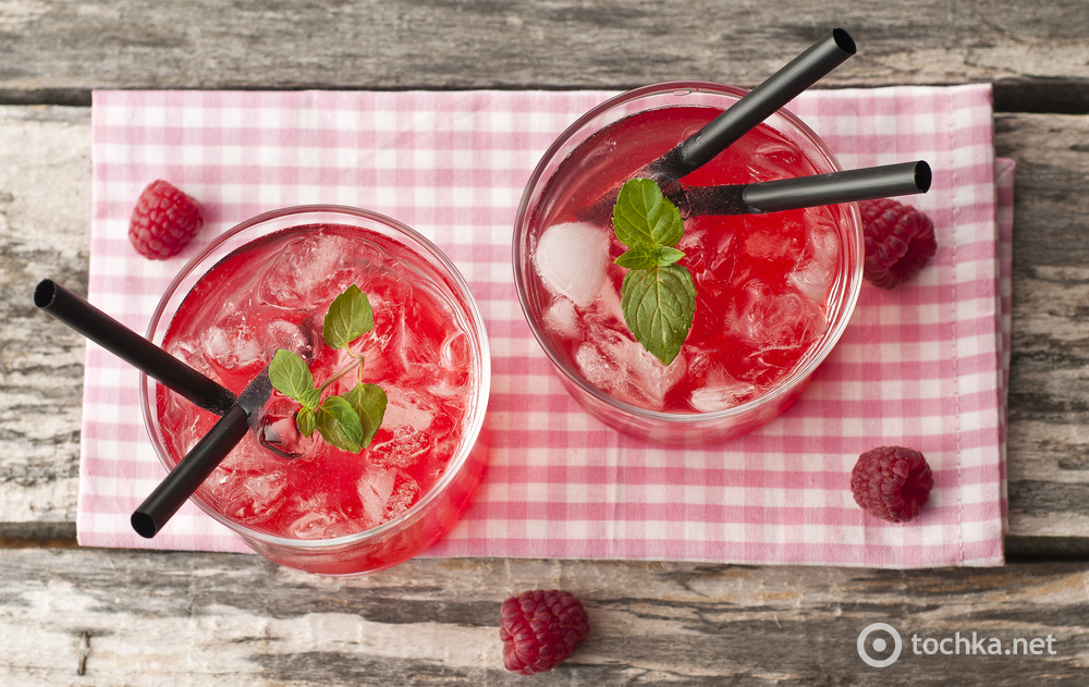 Малина здесь только для прикрытия. Раздави малину в ёмкости, налей все ингредиенты и хорошенько перемешай.