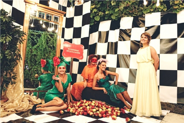 Примером поистине прекрасной тематической свадьбы, которую мне и моей команде посчастливилось организовать этим летом, стала свадьба в стиле Имаджинариум. Столь необычная концепция родилась сама собой, так как, глядя на пару, сразу стало понятно, что они живут в своем счастливом мире волшебства. Имаджинариум - это мир фантазии и воображения: ходулисты, кривые зеркала, лестницы, уходящие в небо, карточная магия, калейдоскопы и многое другое.
