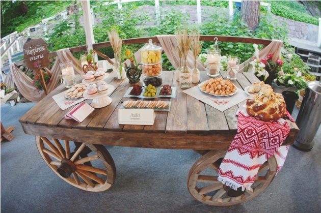 В последнее время одними из самых популярных тематик являются «этно» и «эко». Первая заполучила свою популярность в силу того, что многие молодожены осознали, что свадьба по-украински - это стильно, модно, давно уже исчезли пошлые конкурсы, которые все так не любят, да и гуляний по неделе уже давно никто не устраивает. Современное этно - это дань красивым украинским обрядам, колоритный декор. Кстати, эти две тематики объединяет использование простых материалов в декоре (дерево, мешковина) и доминирование полевых цветов во флористическом оформлении.
