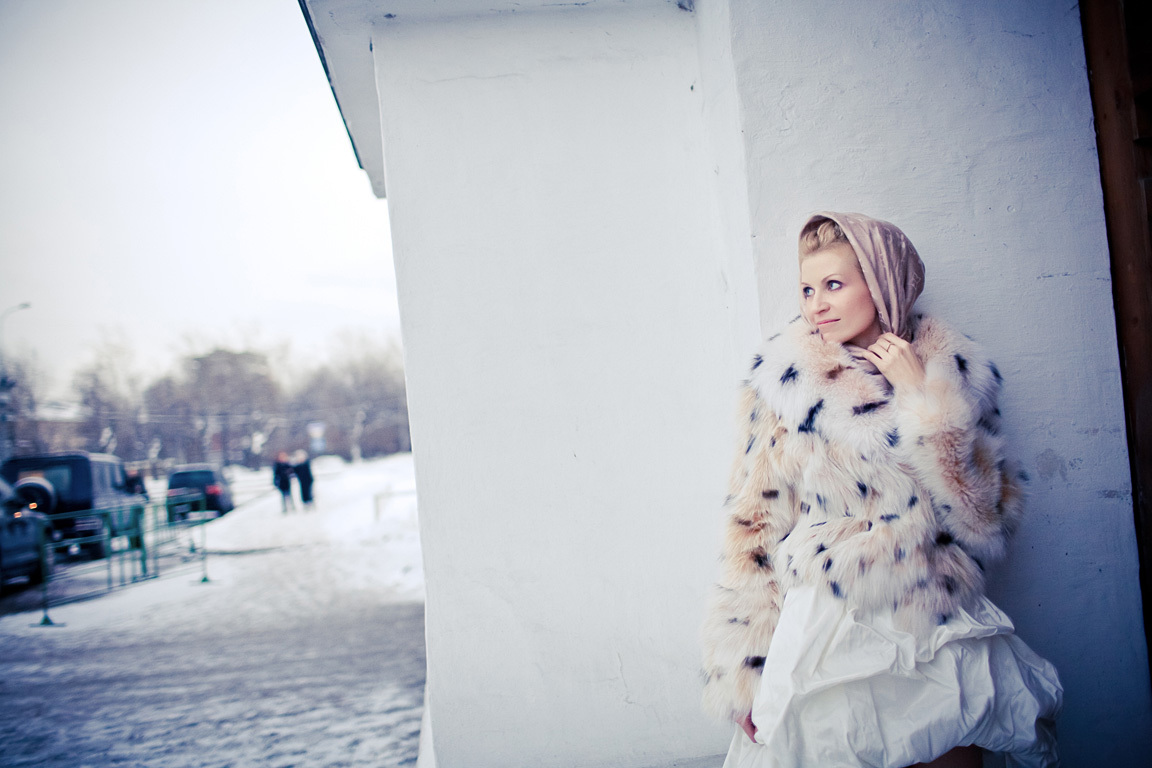 Теперь самое приятное - зимой тебе не обязательно ограничиваться белой гаммой свадебного наряда. Ты имеешь право добавить красок этому счастливому дню. Возможно, в преддверии новогодних праздников или Дня святого Валентина ты даже решишься нарядиться в алое платье? Но даже нежные леденцовые тона, например, светло-сиреневый, голубой, персиковый на фоне снежного пейзажа будут смотреться очень необычно. Используй яркие аксессуары: шарфы, платки, серьги. Обрати внимание: о том, что муфта и шубка обязательно должны быть белыми, мы тоже не говорили.