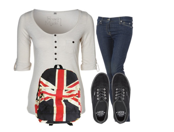 Что касается пуловера, лучше бы ему быть подлиннее и без резинки внизу. А кеды лучше выбирать либо в цвет брюк, либо темнее. Таким образом ты будешь казаться выше.