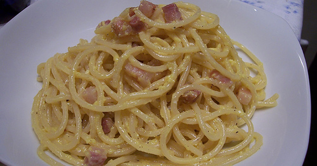 - Чтобы сделать соус Карбонара, положите яичные желтки в миску, добавьте сливки и половину пармезана и смешайте всё вместе вилкой.