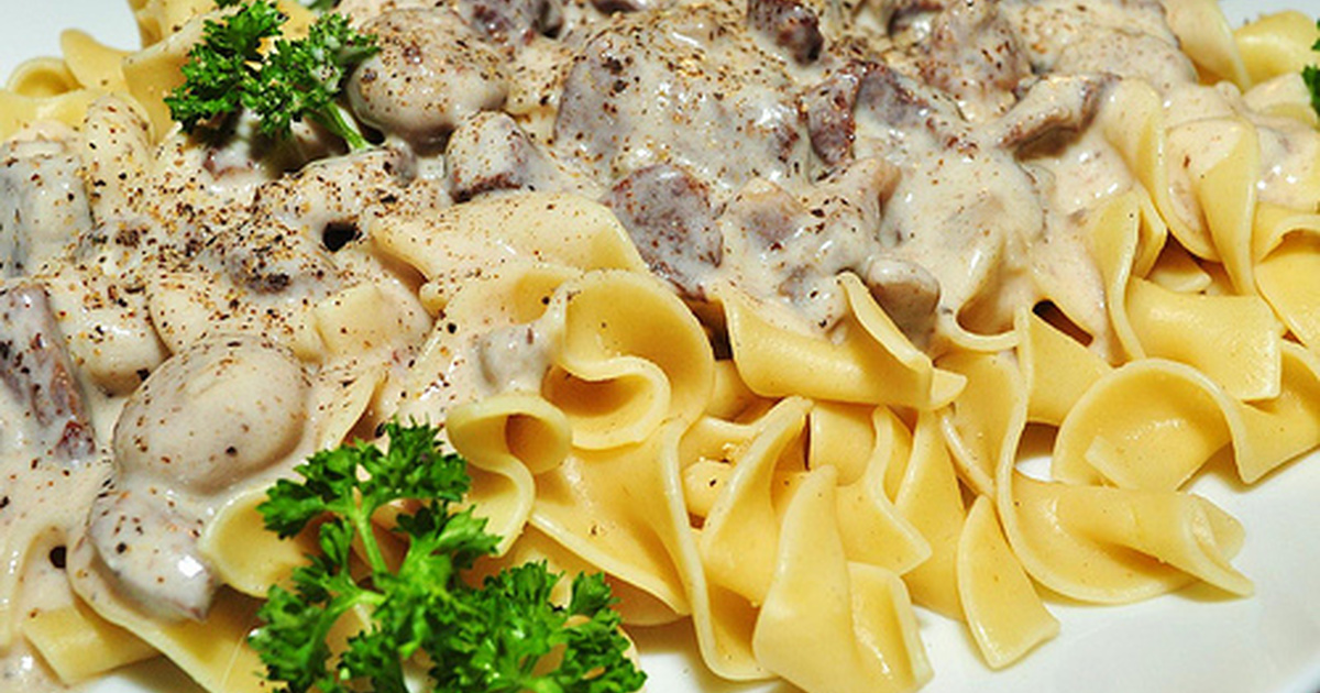- Обжарить лук нарезанный полукольцами. Добавить к мясу. Залить сметаной, поставить на медленный огонь и томить.