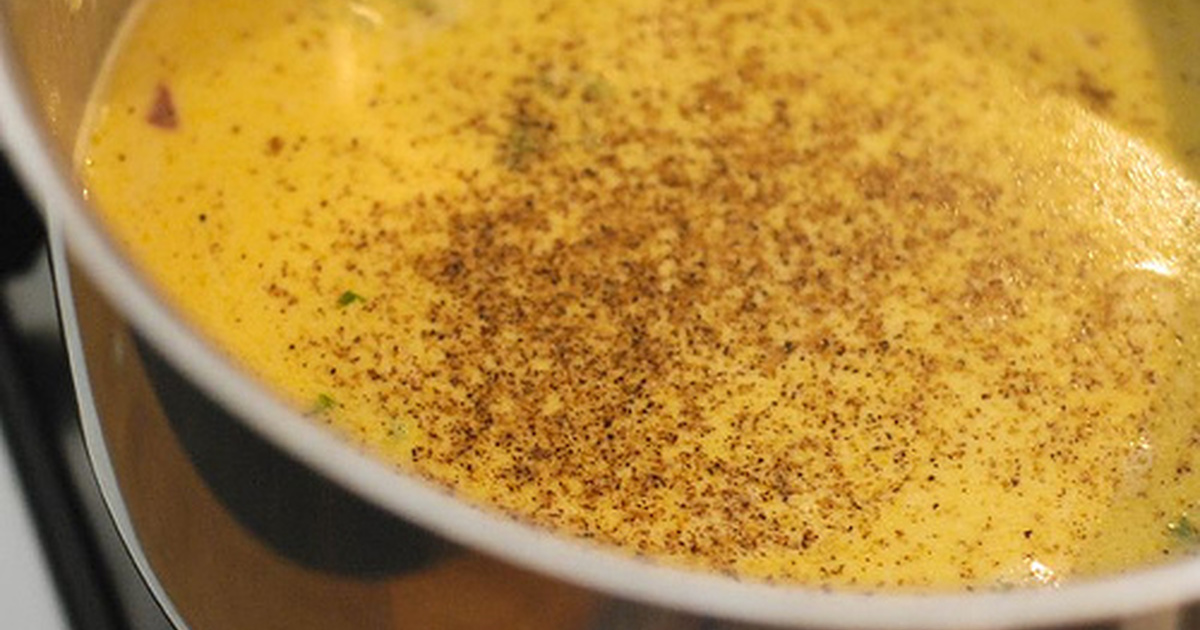 - Сливочное масло 200 гр. Мука 200 гр. Молоко 400 мл. Мускатный орех Соль Перец