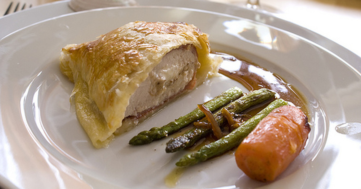 - Сделать небольшой надрез внутри каждого куриного филе и вложить по небольшому брусочку сыра.