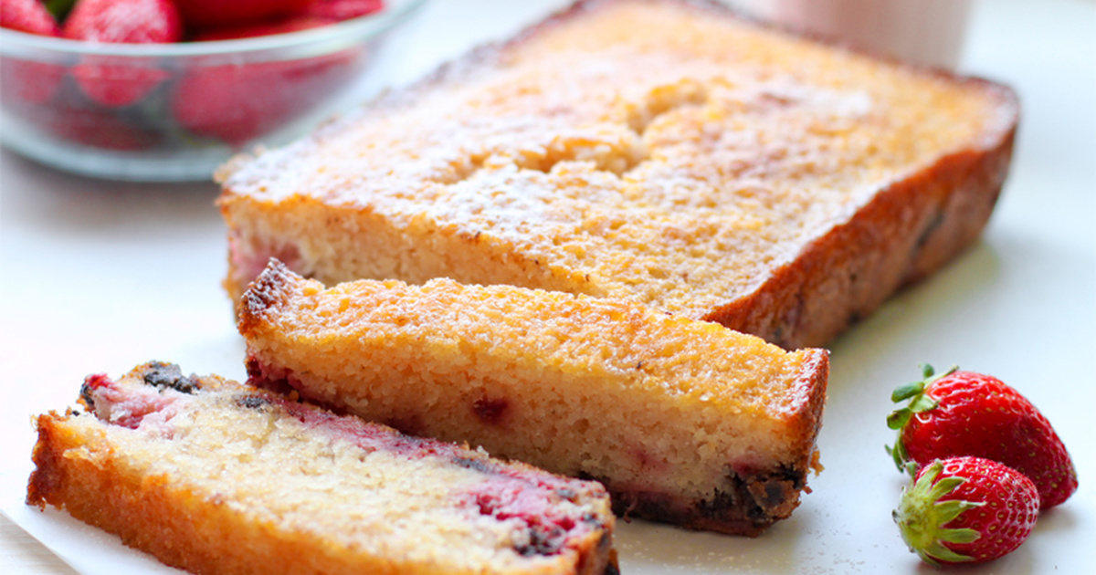 - Духовку нагрейте до 160 градусов. В миске смешайте 2,25 стакана муки, соду, соль и цедру лимона. В чаше для миксера взбейте сливочное масло с сахаром до воздушного состояния около 3 минут. Вбейте по 1 яйцу за раз, продолжая взбивать. Влейте сок лимона. Постепенно всыпьте мучную смесь и йогурт, молоко и ванилин. В отдельной миске смешайте нарезанную клубнику с остальной мукой. Введите в основную массу.
