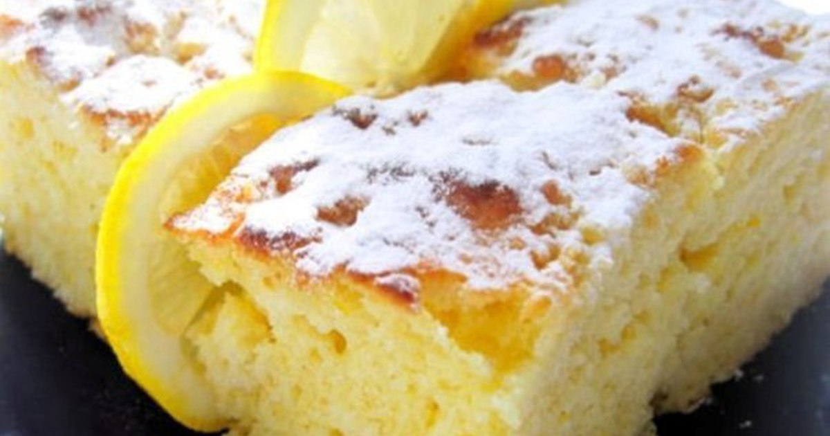 - Вынуть пирог из духовки. Из второго лимона выжать сок и перемешать с сахарной пудрой. Еще теплый пирог смазать глазурью. Полностью остудить, нарезать кусочками и подать к столу.