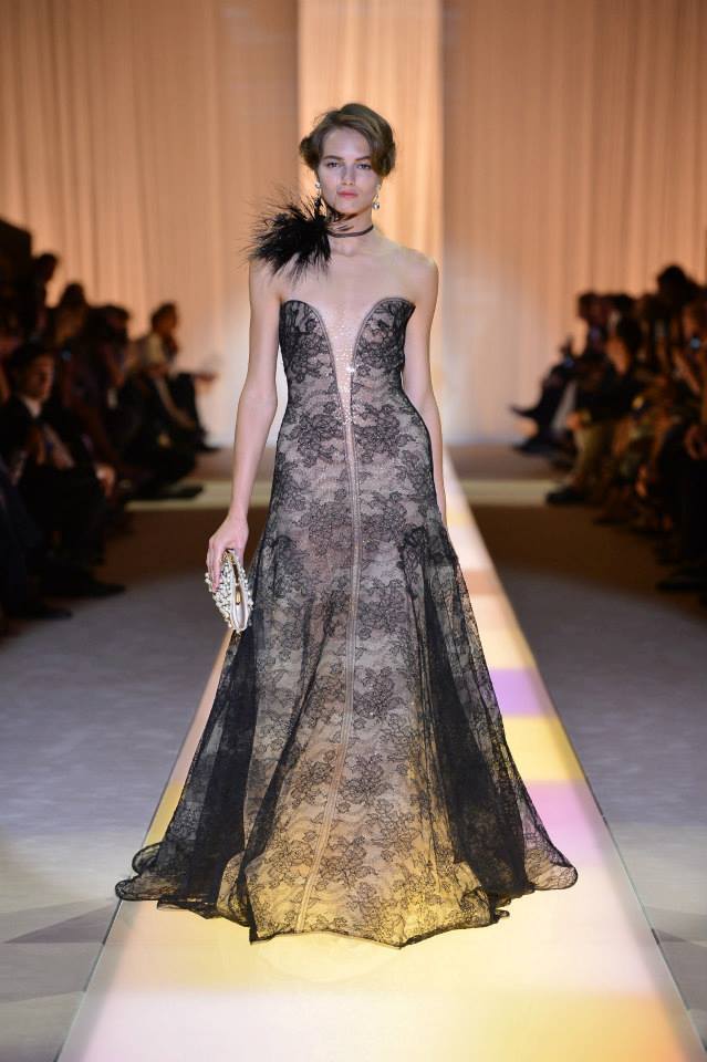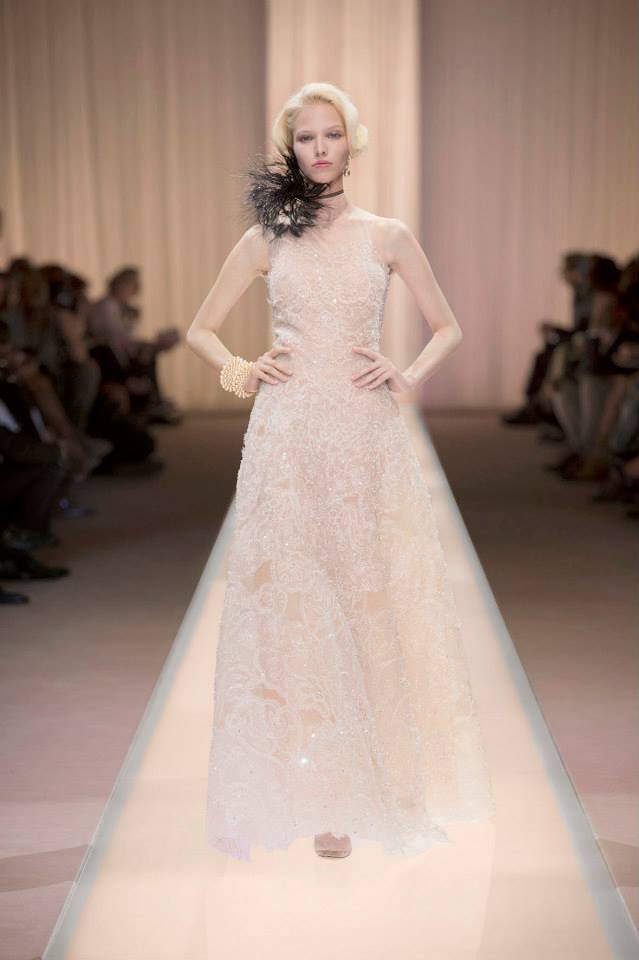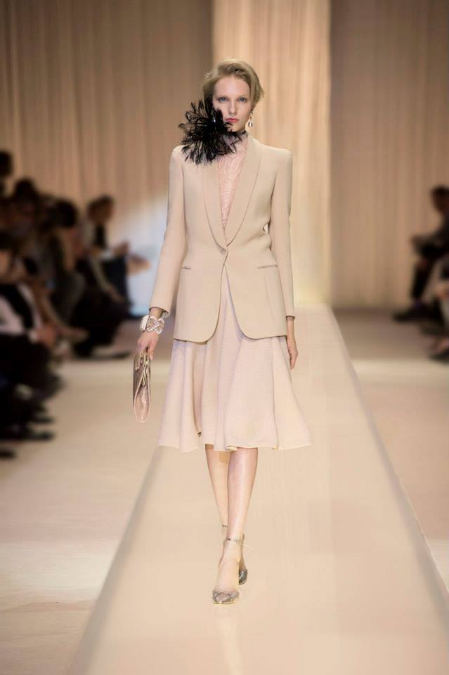 Armani, воодушевившись голливудским гламуром 30-х, создал коллекцию, почти полностью состоящую из бежевых нарядов, лишь немного разбавив ее черным цветом. Модные тренды: пастель, мех, атлас, металлизированные ткани, стразы.