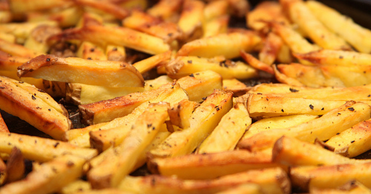 - Картофель очистить и нарезать толстой соломкой как для картофеля фри.