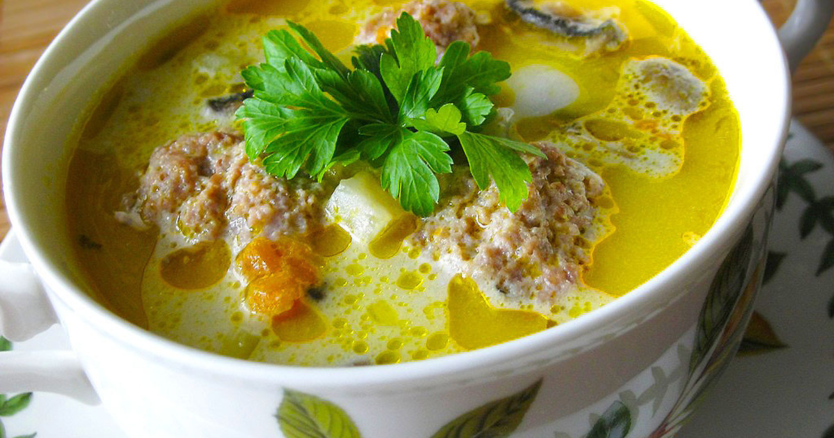 - Лук нарезать кубиками и обжарить до золотистого цвета на небольшом количестве растительного масла. Фарш посолить, поперчить. Добавить 1 яйцо, половину жареного лука. Перемешать. Сформировать фрикадельки. Морковь натереть на терке. Обжарить на растительном масле. В кастрюлю в водой добавляем обжаренный лук и морковь, солим. Доводим до кипения. В супчик выкладываем подготовленные фрикадельки. Тем временем чистим картофель и режем небольшими брусочками. Через 5-7 минут добавляем в суп картофель. Добавляем лавровый лист, специи по вкусу. Сырки нарезаем небольшими кубиками. Добавляем сырки в суп, когда картофель будет готов. Хорошо мешаем, чтобы сырки растворились. Через 3 минутки после этого добавляем зелень. Ароматный супчик готов.