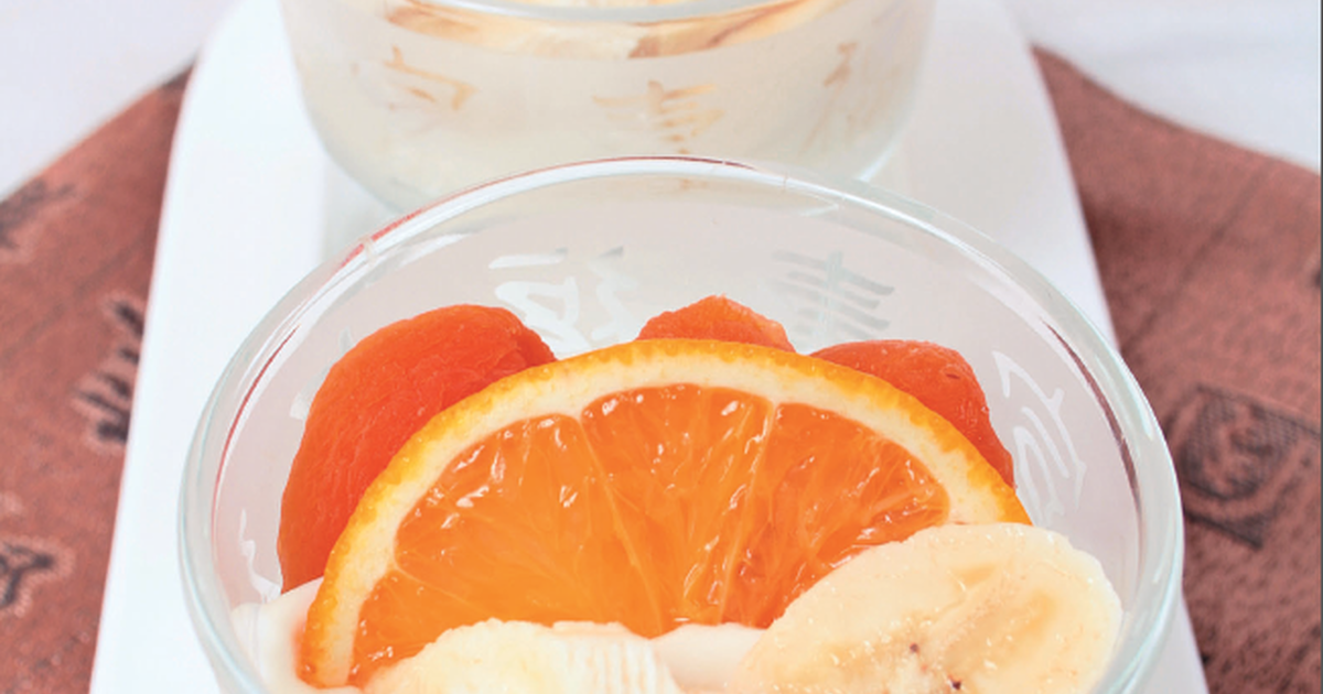 - Курагу замочить на сутки в 500 мл апельсинового сока. Измельченную цедру апельсина смешать с оставшимся соком, сливками, ликером, медом и йогуртом. Взбить до образования крема. Апельсины и бананы нарезать, добавить курагу. Смешать с кремом.