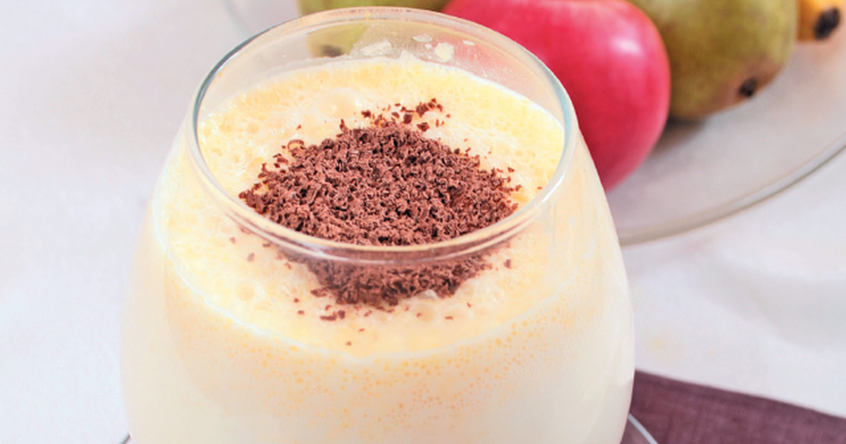 - Смешать молоко и сироп, охладить до температуры 10 градусов С, посыпать измельченным шоколадом, приправить мускатным орехом.