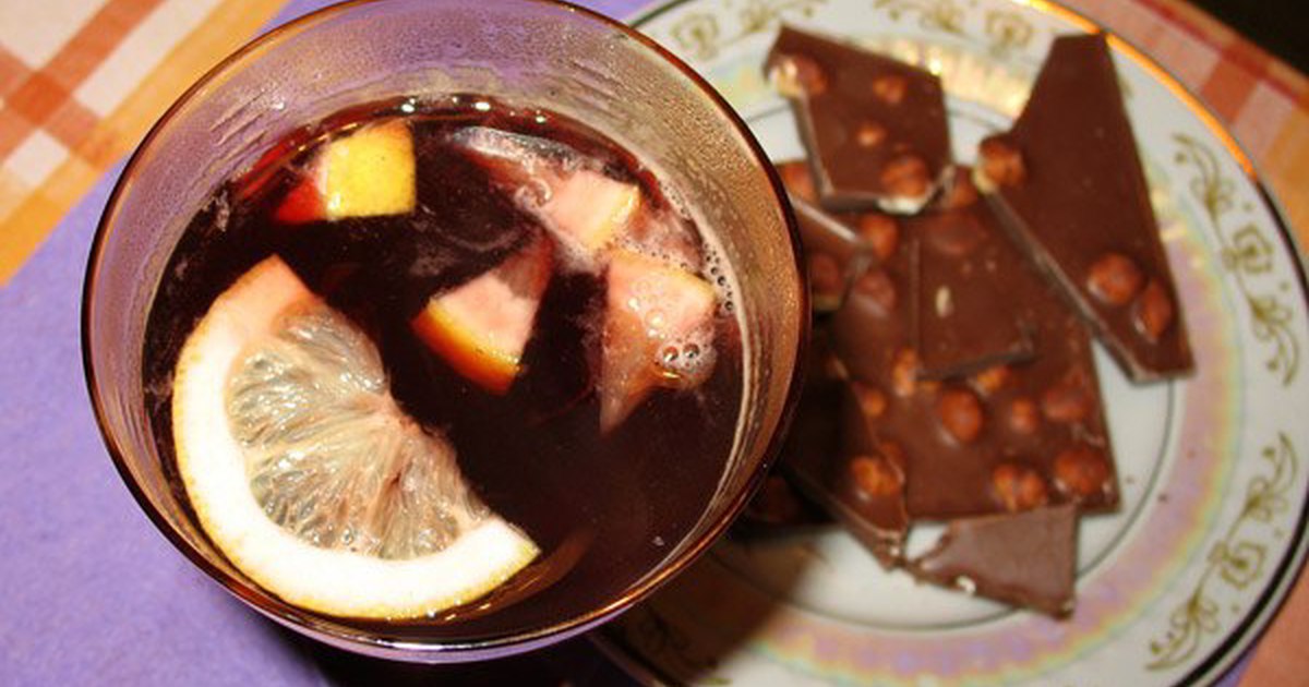- Вино и специи поставить на огонь в керамической или стеклянной кастрюле. Добавить сахар. До вести до кипения и сразу снять. Добавить ломтики лимона, накрыть крышкой и дать настояться 10-15 минут. Разлить по бокалам.