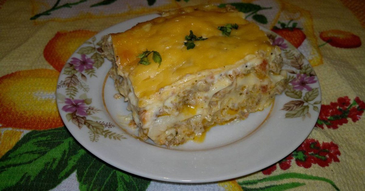 - Снять кожицу с помидоров и порубить мякоть. Лук порубить. Сало и печень нарезать кубиками. Растопить сало в 1 ст. ложке масла, добавить лук, помидоры, мясо и обжарить. Добавить к мясу томатную пасту, белое вино, пряности и тушить 20 минут. Влить бульон. Грибы вымыть и разрезать пополам. Добавить к мясу грибы, печень, десертное вино и сливки. Тушить все на слабом огне около 10 минут. Приготовить соус бешамель. Смазать жиром большую форму для запекания. Выложить в нее слоями соус бешамель, пластины лазаньи и мясной соус. Посыпать тертым сыром и запекать в духовке около 30 минут при 200°С.