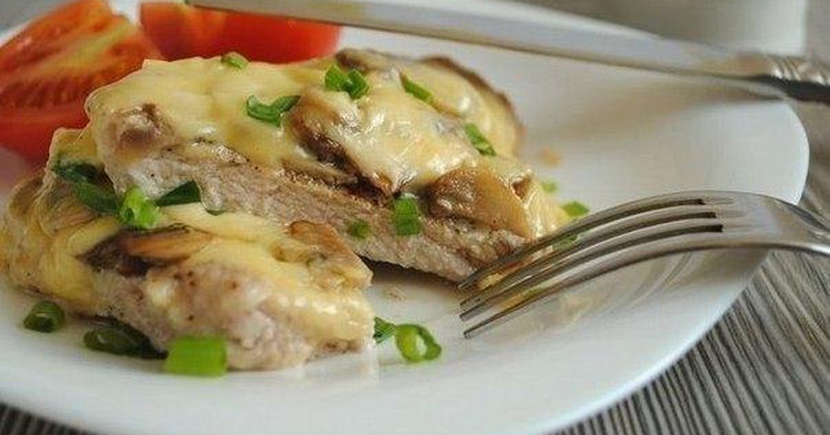 Отбивная с грибами и сыром
