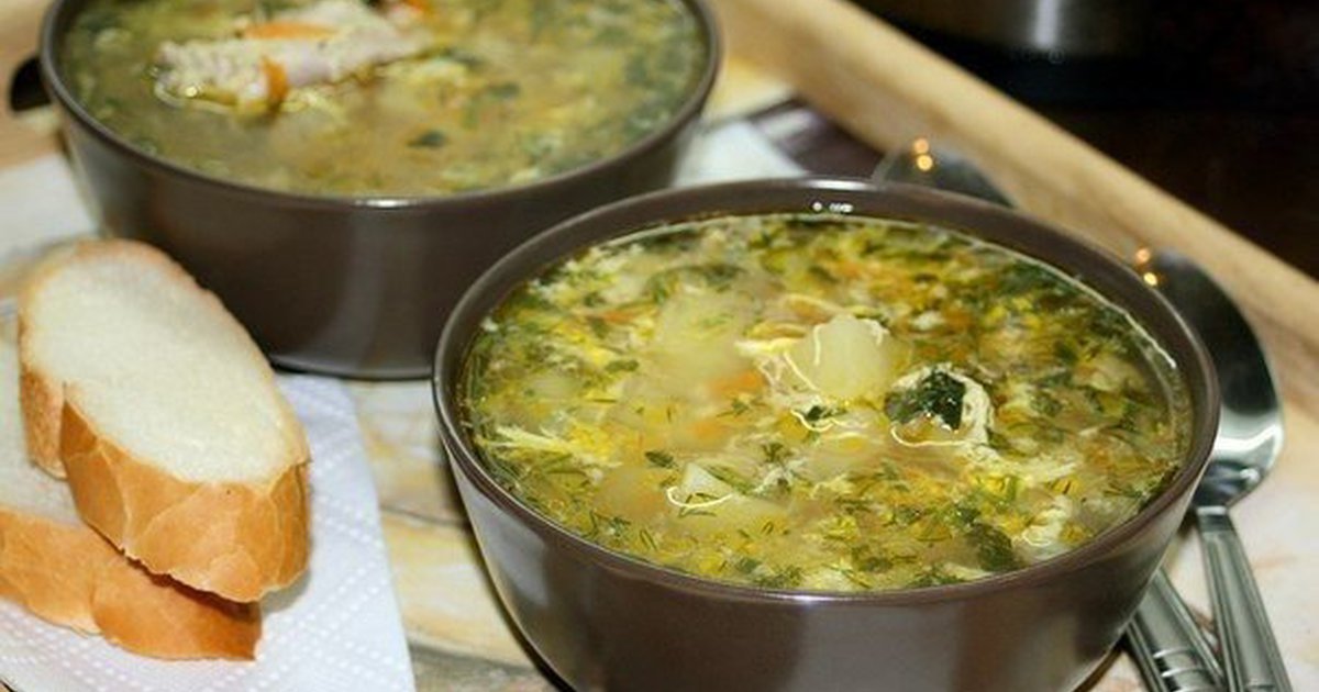 - 1. Курицу порезать на кусочки, залить водой, поставить варить бульон. 2. Когда вода закипит, убавить огонь чтобы вода сильно не бурлила, собрать пену. Оставить вариться минут на 5-10. 3. Почистить, порезать кубиками картофель и добавить в бульон. 4. Пока картофель с курицей варится, почистить лук и морковь, морковь натереть на крупной терке, лук мелко порезать, быстро всё обжарить на растительном масле и добавить в суп. 5. Посолить, поперчить, варить ещё минут 5-10. Попробовать, сварился ли картофель, достаточно ли соли, при необходимости досолить. 6. В пиале взбить немного яйца. Зелень порезать, добавить в суп. Быстро мешая суп ложкой в центре, тонкой струйкой влить яйца. Дать минуту повариться и убрать с огня.