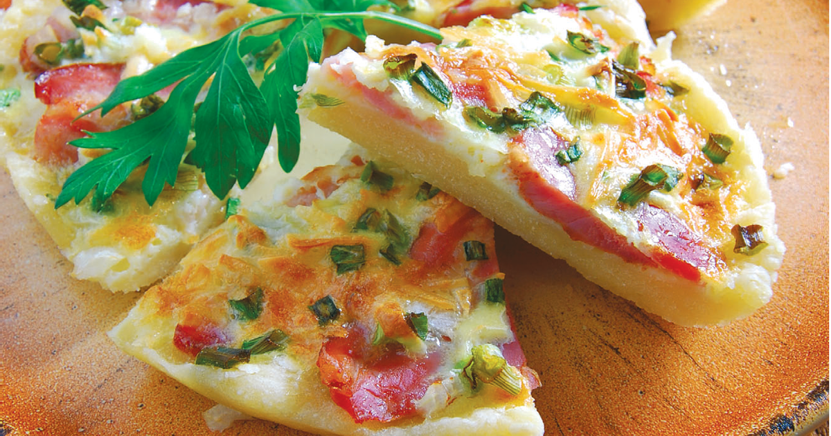 - 1. Воду подогреть и растворить соду. Муку выложить горкой на стол, в середине сделать углубление, ввести яйца, соль, сливочное масло, сметану и воду с содой, замесить тесто, оставить на 15 мин для расслойки. 2. Все сало нарезать соломкой. Свежее сало припустить 1–2 мин в кипятке, а соленое жарить до образования шкварок. Соединить жареное и припущенное сало. 3. Зеленый лук и петрушку с укропом вымыть, обсушить, порубить, соединить с салом. 4. Тесто разделить на две части и раскатать в пласты, на один пласт выложить сало и равномерно распределить, накрыть вторым пластом теста и защипнуть края. 5. Противень смазать жиром и присыпать мукой, уложить приготовленный пирог, поверхность смазать сметаной и выпекать 30–40 мин при 150 °С. 6. Готовый пирог с салом нарезать и подать на стол.
