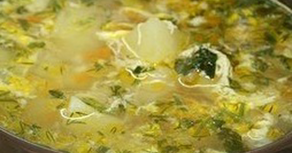 - Курицу порезать на кусочки, залить водой, поставить варить бульон. 2. Когда вода закипит, убавить огонь чтобы вода сильно не бурлила, собрать пену. Оставить вариться минут на 5-10. 3. Почистить, порезать кубиками картофель и добавить в бульон. 4. Пока картофель с курицей варится, почистить лук и морковь, морковь натереть на крупной терке, лук мелко порезать, быстро всё обжарить на растительном масле и добавить в суп. 5. Посолить, поперчить, варить ещё минут 5-10. Попробовать, сварился ли картофель, достаточно ли соли, при необходимости досолить. 6. В пиале взбить немного яйца. Зелень порезать, добавить в суп. Быстро мешая суп ложкой в центре, тонкой струйкой влить яйца. Дать минуту повариться и убрать с огня