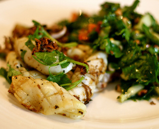 Вообще морепродукты являются низкокалорийной едой, и кальмары – не исключение. Кроме того, они прекрасно сочетаются с овощами. Салат с кальмарами, огурцами и зеленью готовится несложно и получается нежным и приятным на вкус.