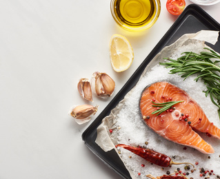 - Затем рыбу солим, поливаем соевым соусом и заправляем специями. Оставляем настояться и пропитаться на 40 минут.