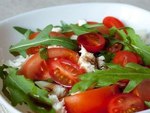 Салат с помидорами, моцареллой и рукколой