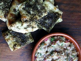 БАКЛАЖАНЫ ЗАПЕЧЕННЫЕ, С ХЛЕБНОЙ ЛЕПЕШКОЙ