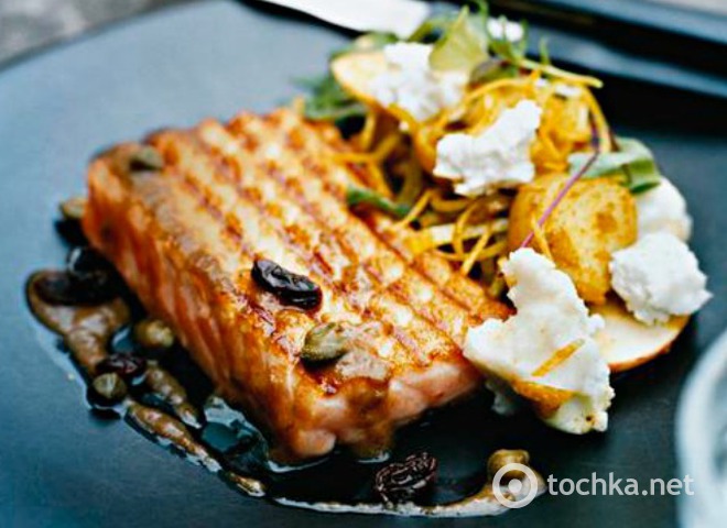 Семга на гриле с салатом с карри