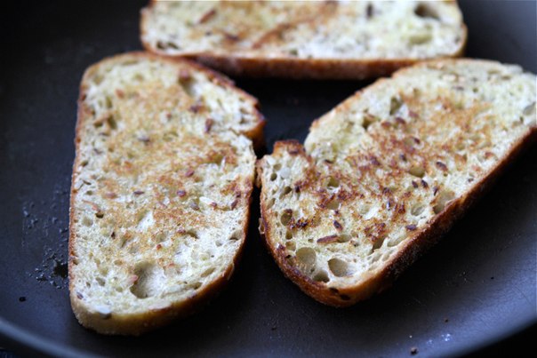 У цей час нагрій сковороду на середньому вогні. Розтопи вершкове масло та обсмаж кожен шматок хліба з обох боків.