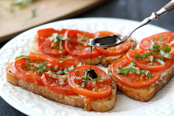 Зараз помідори смачні як ніколи! І готувати їх - одне задоволення! Ми сьогодні пропонуємо тобі рецепт дуже смачних бутербродиків на сніданок. Із запеченими помідорами, сиром і соусом бальзамік.