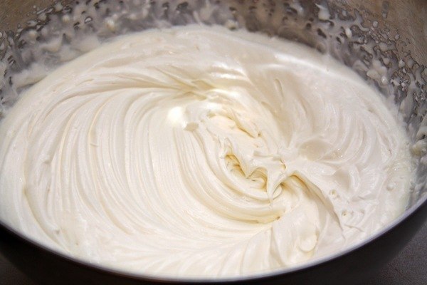 Для крему добре збий маскарпоне з цукровою пудрою і вершками. Вийде густий і ніжний крем. Прибери його в холодильник до використання і начиняй лише вистиглі тістечка.