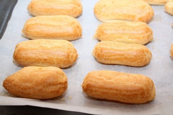 Випікати в розігрітій до 200 градусів духовці близько 30 хвилин. Еклери повинні добре піднятися. Після вимкнення духовки залиш їх усередині на 10-15 хвилин, щоб вони не осіли.