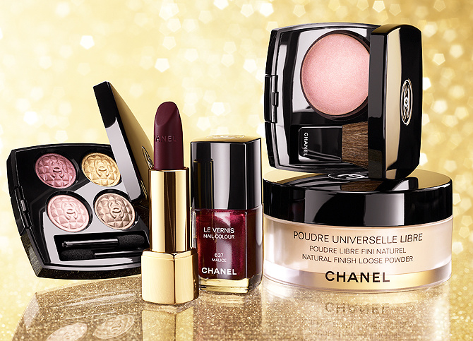 Chanel у своїй різдвяній колекції представили все той же основний тренд у макіяжі - бронзово-золотисту і червону гаму.