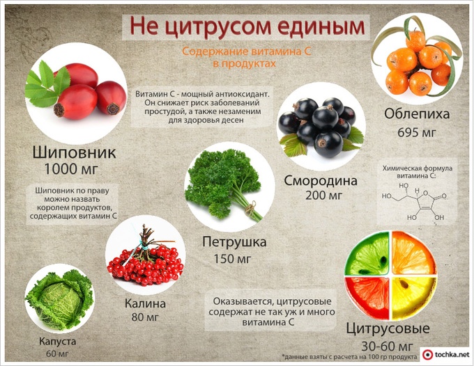 Оскільки зима вже вступила в свої права, і зараз здоров'я необхідно берегти особливо ретельно, ми вирішили розібратися, в яких продуктах міститься найбільше вітаміну С. А щоб не «завантажувати» тебе текстами, підготували інфографіку, в якій можна подивитися, що необхідно включити в свій раціон, щоб запастися вітаміном С і пережити цю зиму без жодної застуди!