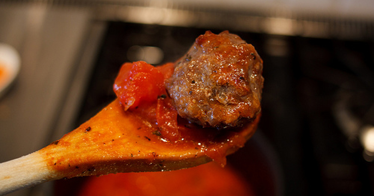 - Помидоры натрите на терке, добавьте получившийся соус в форму с тефтелями и тушите до готовности.