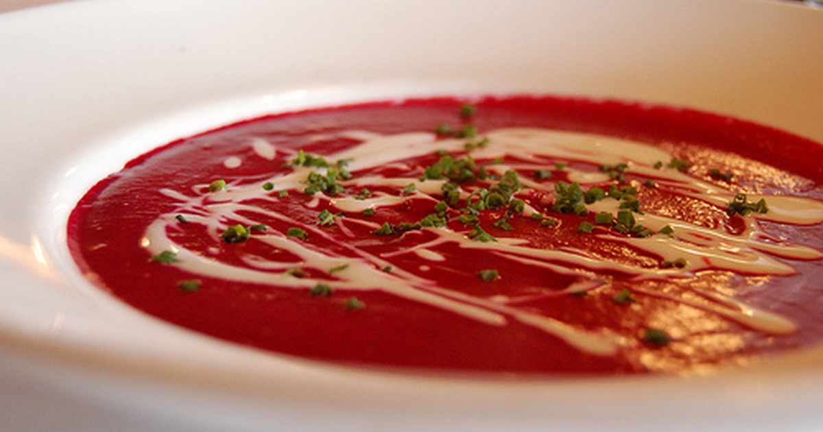 - Налить в тарелку свекольник, добавить огурцы, редис и зелень.