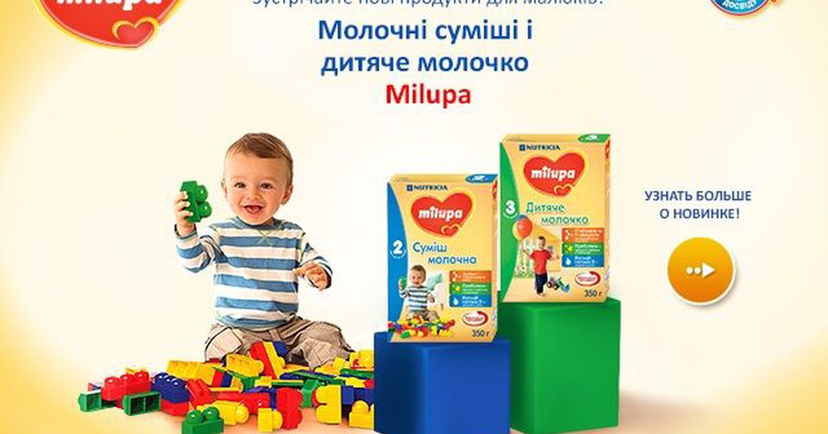 З дитячими молочними сумішами Milupa ви можете бути впевнені, що ваш малюк отримує все необхідне для гармонійного росту і розвитку. І його весела усмішка подякує вам за турботу.