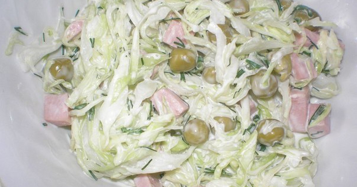 - Капусту нашинковать, присыпать щепоткой соли, хорошенько обмять. Добавить горошек, кукурузу, нарезанные кубиками яйца и колбасу. Заправить майонезом. Приятного аппетита!