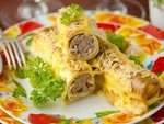 Яичные рулетики с мясной начинкой - отличный завтрак!