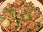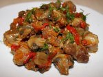 Мясо тушеное с шампиньонами и сладким перцем
