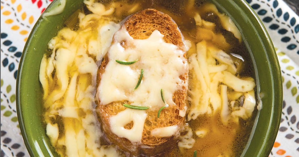 - Лук измельчите и слегка обжарьте в половине растительного масла. Приправьте перцем. Выложите подготовленный лук в горячий бульон и кипятите 15 минут. Посолите, влейте вино. Дробленый миндаль обжарьте в оставшемся масле, добавьте в суп, перемешайте, прогрейте. Разлейте по тарелкам. В каждую тарелку положите по кусочку подсушенного в тостере хлеба и посыпьте натертым на крупной терке сыром и розмарином.
