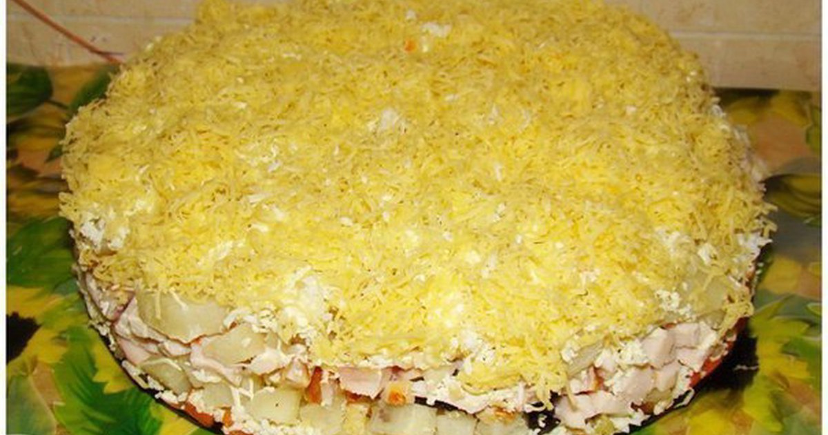 - Овощи и яйца отварить и почистить от кожуры и скорлупы. Курицу нарезать кубиками, чернослив мелкими кусочками. Орехи измельчить. В последнюю очередь нарезаем небольшими кубиками картофель. Теперь берем разъемную форму и начинаем делать наш салатик. Итак, взяли форму и начали выкладывать следующие слои: 1. морковь, натертая на крупной терке, тоненькая сеточка майонеза; 2. половина сыра, натертого на мелкой терке, тоненькая сеточка майонеза; 3. половина яиц, натертых на мелкой терке, тоненькая сеточка майонеза; 4. половина картофеля, и хорошенько смазываем майонезом; 5. половина измельченных грецких орехов; 6. чернослив; 7. курица, тоже сверху смазываем майонезом; 8. картофель, немного присаливаем и хорошо смазываем майонезом; 9. вторую половину яиц, натертых на мелкой терке, тоненькая сеточка майонеза; 10. оставшийся сыр, натертый на мелкой терке. Украшаем по своему желанию.