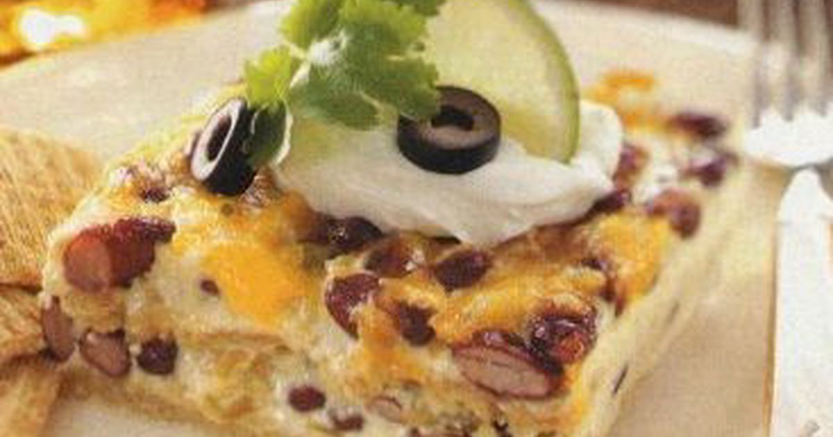 - 1. Включить духовку для предварительного разогрева до 180 градусов. В небольшой миске смешать фасоль, репчатый лук, перец чили и кумин. В жаропрочную промасленную форму размером примерно 10х20 см выложить 8 крекеров, на крекеры выложить половину фасолевой смеси, снова слой крекеров, а на них оставшуюся фасолевую смесь. Посыпать блюдо сыром. 2. В небольшой миске смешать майонез, молоко и взбитые яйца, залить этой смесью содержимое жаропрочной формы и поставить в предварительно разогретую духовку. Запекать блюдо около 20-25 минут. Подавать запеканку из фасоли со сметаной, оливками и дольками лайма, украсив листочками петрушки.