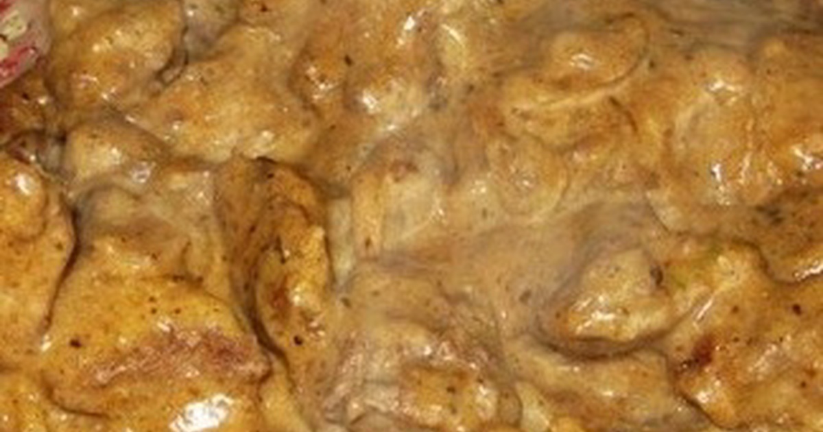 - Печень промойте и очистите от пленочек. Нарежьте продолговатыми кусочками, посолите, добавьте сахар и перец. Помешивая, обжариваем печень на сковороде без масла, примерно 4 минуты. Добавляем сливочное масло и лук, порезанный полукольцами. Готовим еще 4 минуты. Присыпаем печень мукой, перемешиваем. Жарим еще 2 минуты. Вливаем сметану, перемешиваем и тушим под крышкой 4-5 минут.