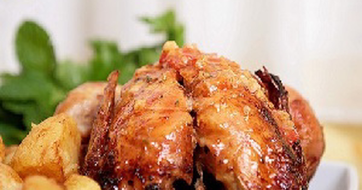 - Тушку цыпленка вымываем под проточной водой и приправляем различными специями, а также в меру солим. Затем обжариваем на сливочном масле до появления золотистой корочки. Чернослив хорошенько промываем и залив кипятком оставляем на некоторое время набухать. Когда он набухнет, чернослив вынимаем, а воду отставляем в сторону (она нам позже пригодится). Перец болгарский очищаем и нарезаем в виде полосок. Помидоры черри вымыв, режем напополам. Лук порей нарезаем в виде полуколец. Все эти овощи обжариваем на сковороде. Спустя немного времени добавляем чернослив и пряности. Затем поверх жареных овощей укладываем цыпленка и добавляем жидкость от чернослива. Накрыв крышкой, оставляем тушиться около 15 минут. По истечении времени убираем цыпленка, а в соус добавляем ложку муки и интенсивно перемешиваем. Таким образом, соус станет гуще. Подавать в виде гарнира можно отварной картофель или пюре из картофеля. А также неплохо подойдет отварной рис.
