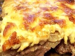 Говядина по-купечески с сыром и грибами