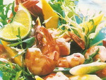 Весенний салат с креветками и манго