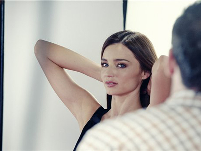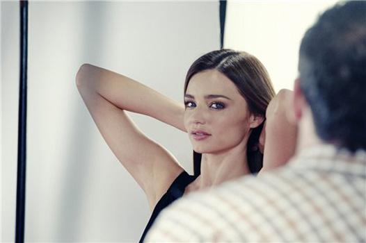 У мережу потрапили знімки зі знімального майданчика рекламного ролика, на яких Міранда в чорній сукні і з дуже гарною укладкою крутиться перед камерою.