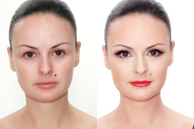 Схема, представлена у відео-уроці - найкращий варіант для тих, хто хоче зробити акцент на губах. Тим більше що стріли в поєднанні з червоною помадою - один з варіантів ретро-макіяжу.